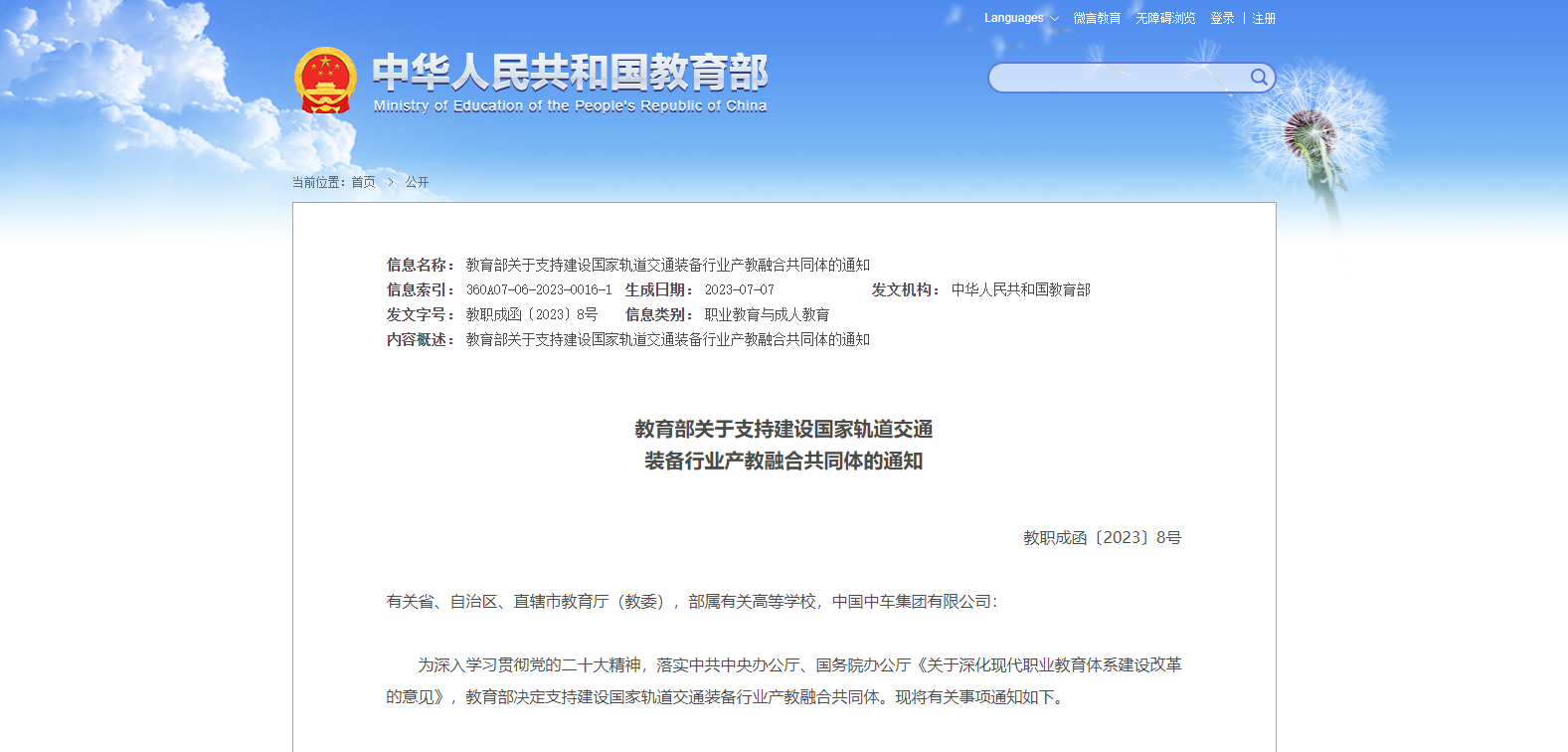 為深入學(xué)習(xí)貫徹黨的二十大精神,落實中共中央辦公廳、國務(wù)院辦公廳《關(guān)于深化現(xiàn)代職業(yè)教育體系建設(shè)改革的意見》,教育部決定支持建設(shè)國家軌道交通裝備行業(yè)產(chǎn)教融合共同體?,F(xiàn)將有關(guān)事項通知如下。